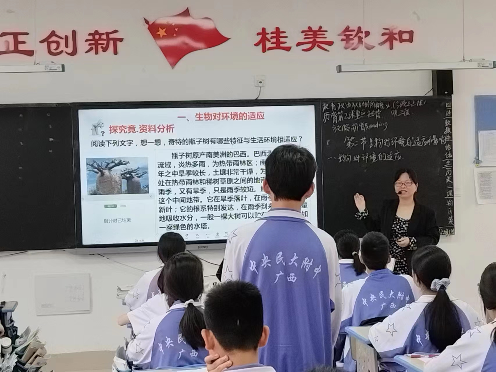 本次教研活动由理综组黄晓春老师进行公开课展示,授课的主题是《生物对环境的适应和影响》。黄老师用娴熟的教学技巧和独具匠心的教学设计,为大家呈现出一堂精彩纷呈的生物课。